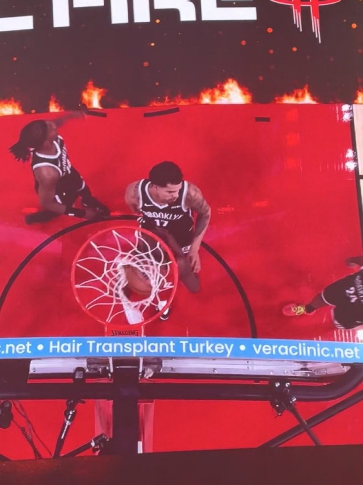無獨(dú)有偶,美 媒BrickCenter曬照,NBA賽場(chǎng)籃板上沿正好有土耳其植發(fā)公司Vera Clinic 的廣告。