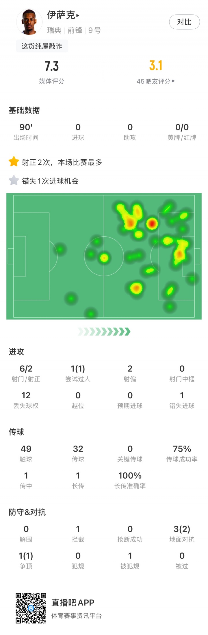 10月14日訊 世預(yù)賽賽場(chǎng),瑞典0-1不敵科索沃,瑞典無(wú)緣直接晉級(jí)世界杯。本場(chǎng)約克雷斯、伊薩克均首發(fā)打滿(mǎn)全場(chǎng),伊薩克全場(chǎng)6射2正0球,1次錯(cuò)失良機(jī)。約克雷斯數(shù)據(jù)為2射1正0球。