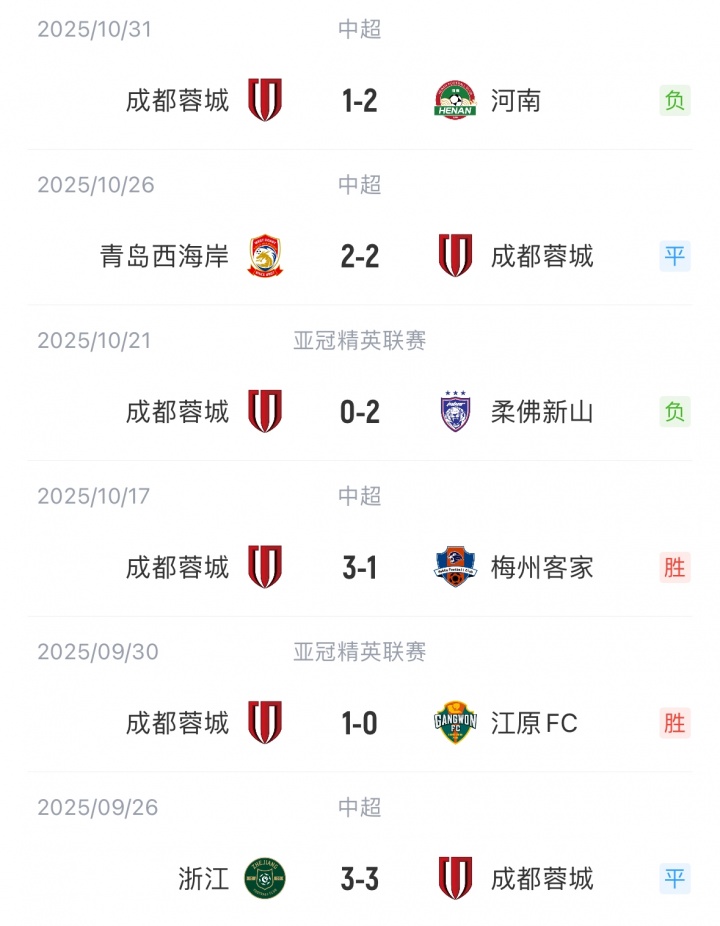 【蓉城近期戰(zhàn)績(jī)】