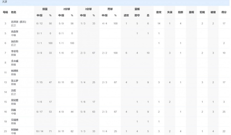 天津隊(duì)方面,時(shí)德帥22分5籃板3助攻4搶斷,田雨25分9籃板2助攻,谷澤浴 17分6籃板14助攻,張?jiān)茐?mèng)17分9籃板3助攻。