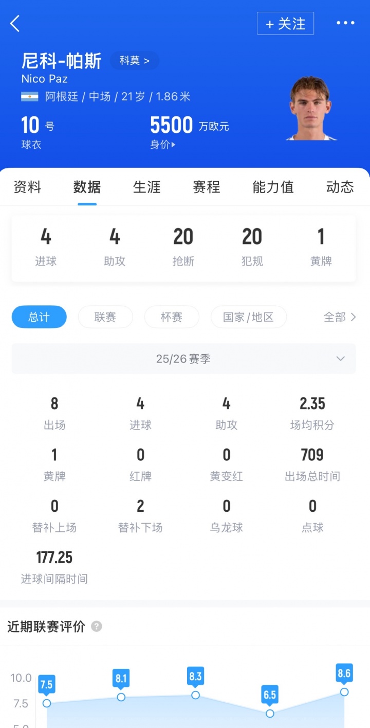 羅馬諾在播客中說道:“帕斯天賦驚人,已經吸引了全歐洲的關注。熱刺在此前就曾試圖簽下他,報價總金額高達7000萬歐元。但科莫和皇馬都拒絕了這份報價。要知道,盡管帕斯名義上歸屬科莫,但皇馬有他50%的轉會分成以及1000萬歐元的回購條款。