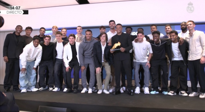 10月31日訊 姆巴佩在伯納烏球場貴賓室領(lǐng)取上賽季的歐洲金靴獎杯。這是姆巴佩生涯首次斬獲歐洲金靴,也是烏戈-桑切斯和C羅之后的皇馬第三人。