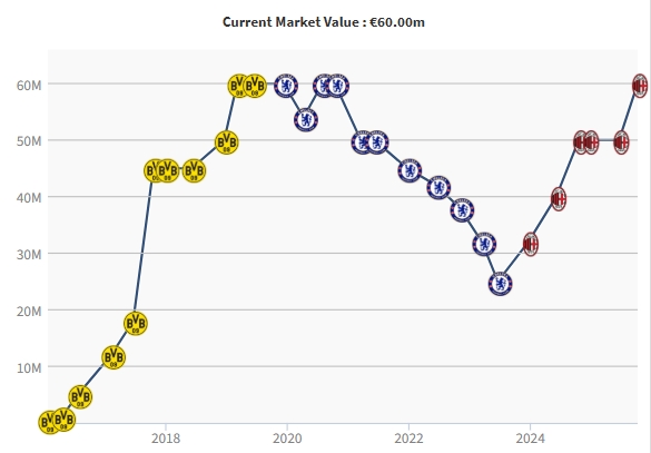 10月07日訊 今日德轉(zhuǎn)更新意甲球員身價,其中27歲AC米蘭邊鋒普利西奇身價上漲至6000萬歐,時隔5年追平生涯紀(jì)錄。普利西奇曾在2019、2020年效力多特和切爾西時期身價達(dá)到6000萬歐,此后一路下跌至2500萬歐。2023年夏窗,普利西奇2080萬歐轉(zhuǎn)會費(fèi)加盟AC米蘭后重新找回狀態(tài),本賽季出戰(zhàn)8場比賽,貢獻(xiàn)6球2助。