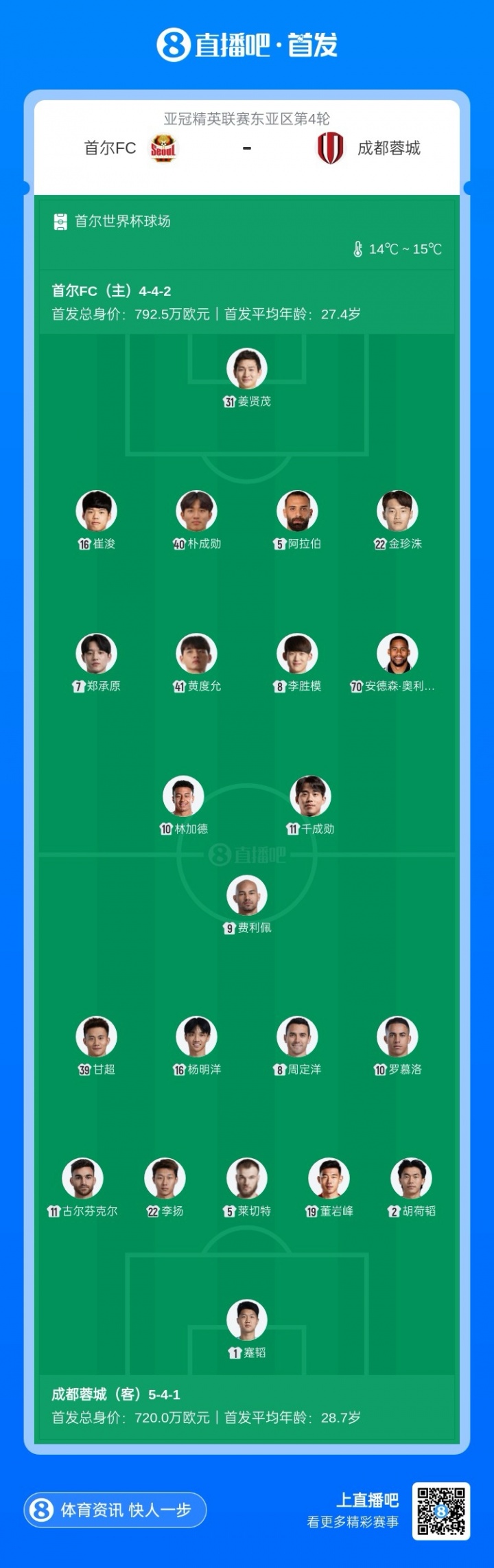 本輪賽前,成都蓉城1勝0平2負(fù)積3分排名東亞區(qū)第9,處于晉級(jí)區(qū)外;首爾FC則是1勝1平1負(fù)積4分位列第6。蓉城近期各項(xiàng)賽事3輪不勝。