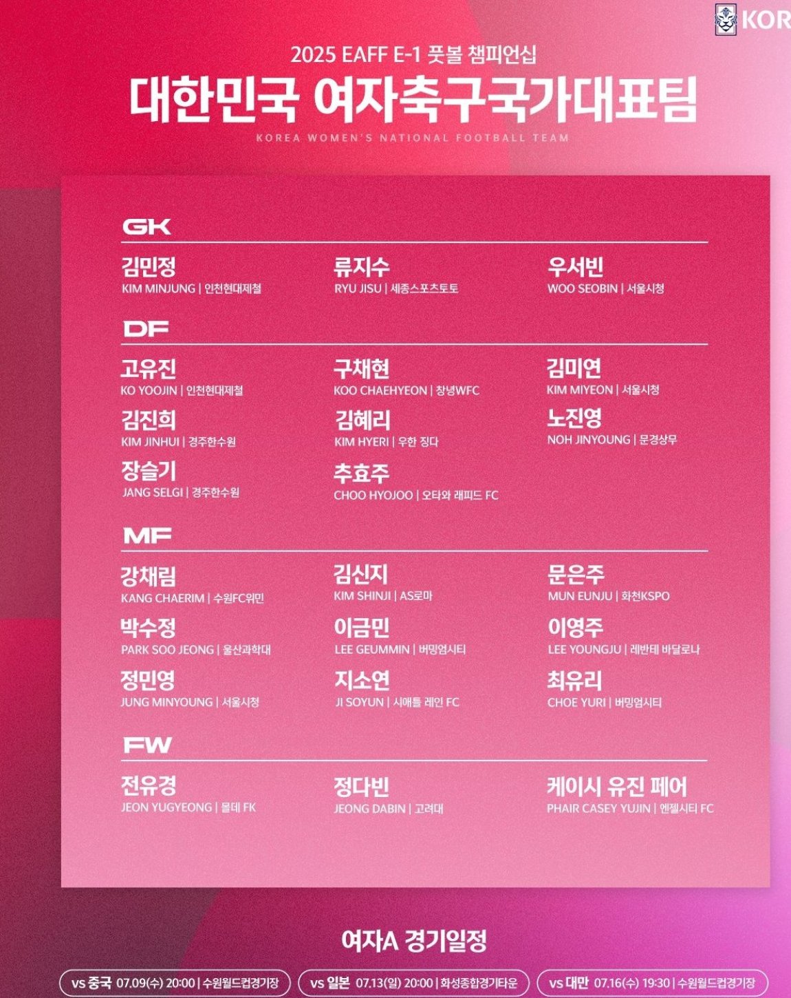 首戰(zhàn)中國隊(duì)!韓國女足東亞杯名單:9位旅外球員+12位本土聯(lián)賽球員 首戰(zhàn)中國隊(duì)!韓國女足東亞杯名單:9位旅外球員+12位本土聯(lián)賽球員 2025-06-24